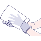 Jednorazowe myjki z miękkiego i chłonnego materiału zaprojektowane tak, by chronić skórę dłoni osoby pielęgnującej.