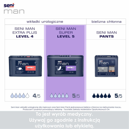Wkładki urologiczne Seni Man Super Level 5 to skuteczna ochrona dla mężczyzn